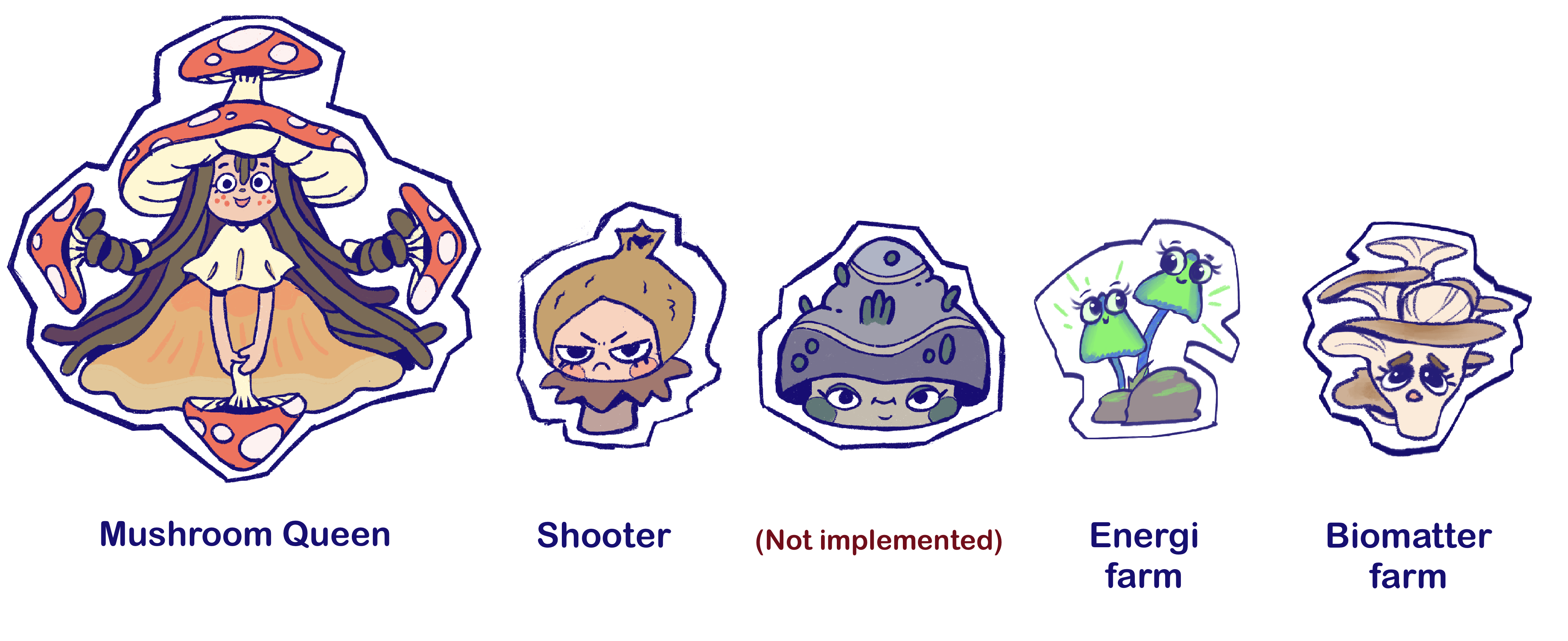 A game about farming mushrooms for biomatter and making a mushroom network to defend your precious Mushroom Queen! ๐